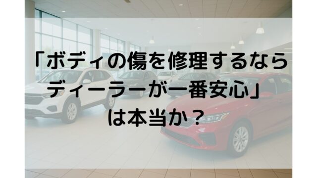 カーライフ「ボディの傷を修理するならディーラーが一番安心」は本当か? 2025年9月8日 midohiro みなとこログ 今回は、そんな車の傷の修理をどこに出そうか迷っている人に向けた記事です。 車が傷ついてしまったときに、どこに板金塗 …