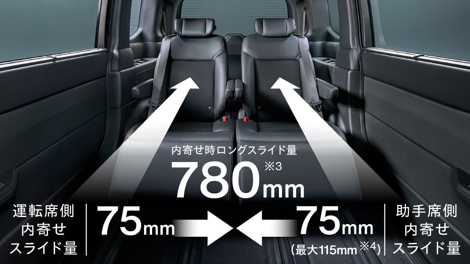 スライド量も同クラスでトップなので、ステップワゴンは2列目をとても広く使うことができます。