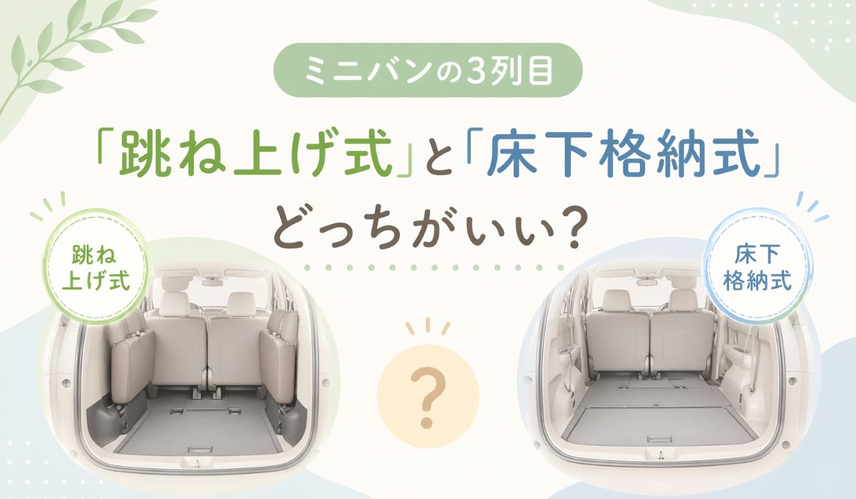 子育てパパミニバンを買おうと思ってるんだけど、3列目シートって跳ね上げ式と床下格納式ってどう違うの?どっち選べばいい?