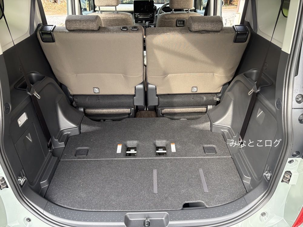 格納後は床面がほぼフラットになり、荷室が横方向にも広々と使えるのが特徴です。